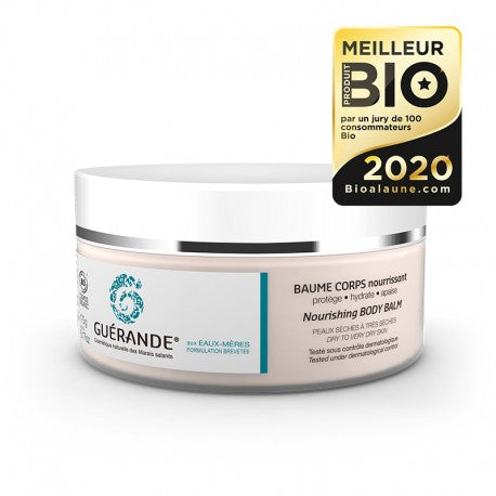 Pour les Peaux sèches à très sèches le Baume corps Guérande a une texture douce et fondante qui hydrate durablement et nourrit intensément. Protège hydrate apaise.