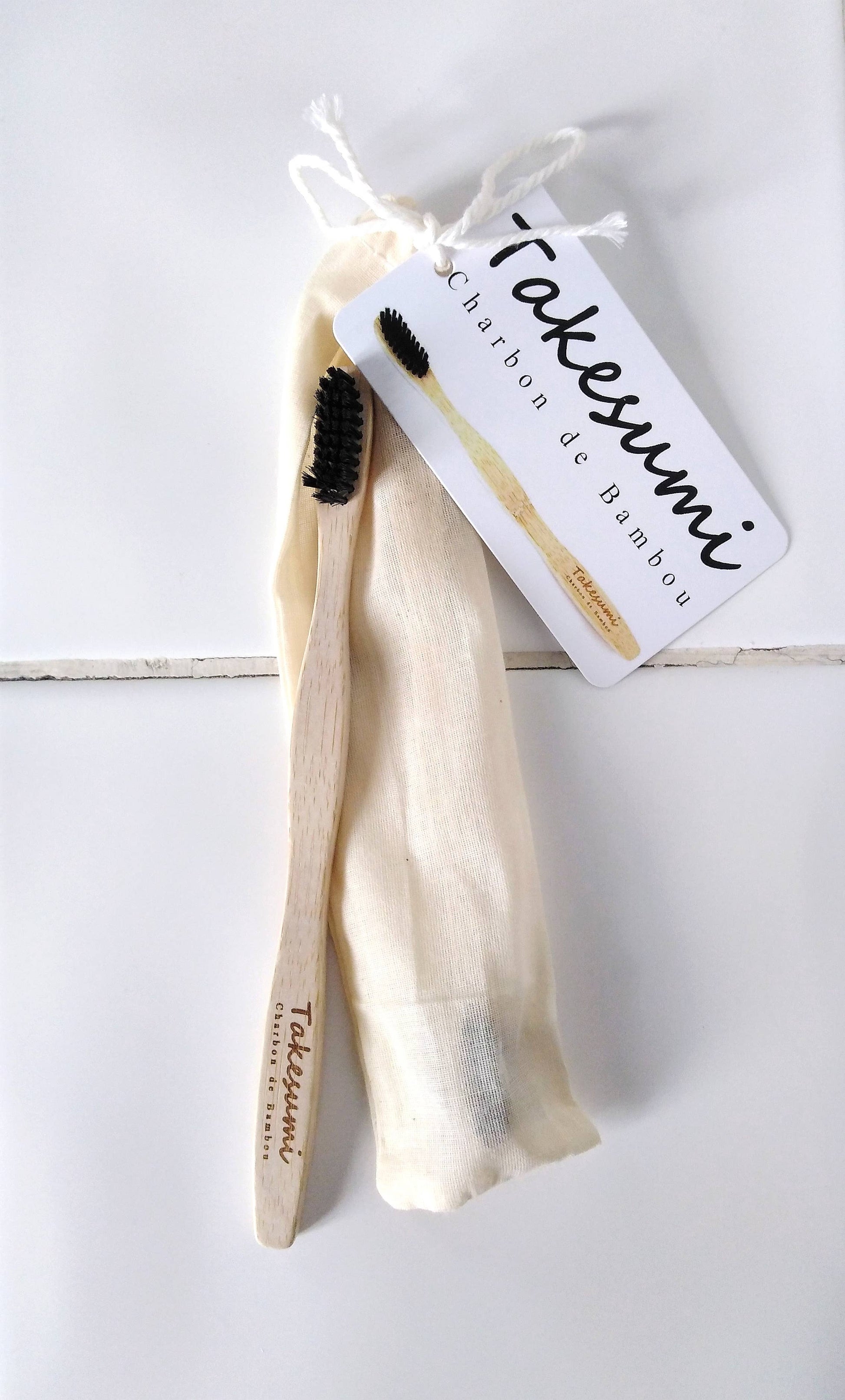 ZERO DECHET, sans BPA, VEGAN Brosse à dents en bambou infusée au charbon de bambou Takesumi.