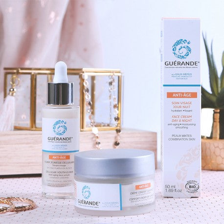 Avec cette Crème jour-nuit, Guérande complète sa gamme par un soin visage bio spécifiquement conçu pour satisfaire les peaux normales à sèches et leur apporter confort et protection, le matin et le soir. La peau est hydratée et raffermie et les traits sont lissés.
